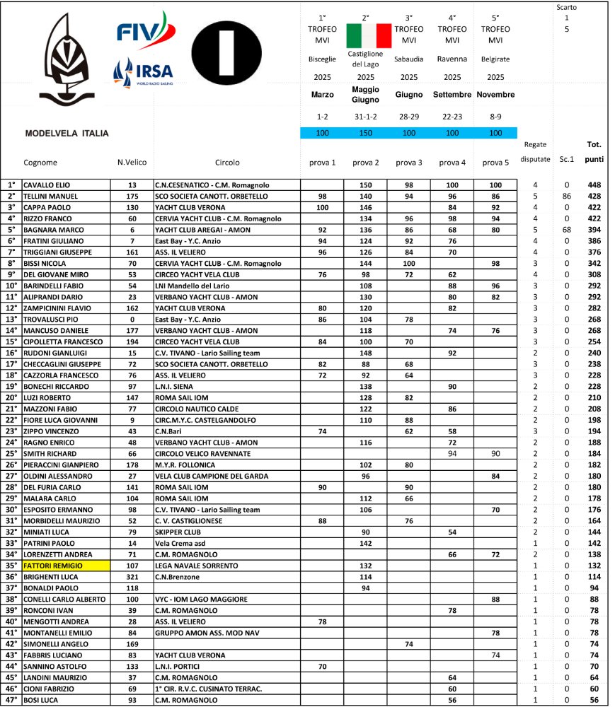 Sezione dedicata alla pubblicazione delle Ranking Nazionali - Classe IOM e Classe M