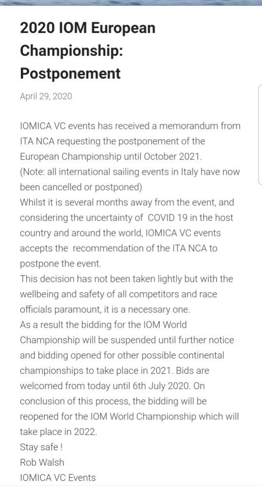 LA IOMICA ACCOGLIE LA RICHIESTA DI SPOSTAMENTO DEL CAMPIONATO EUROPEO AL 2021 (1-8 OTTOBRE) A CAUSA DELL'EMERGENZA SANITARIA COVID19.